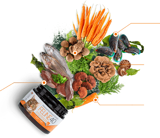 Nutrition is key to a healthy cat. That’s why Feline 40 combines 40 of the world's most powerful "feline superfoods."